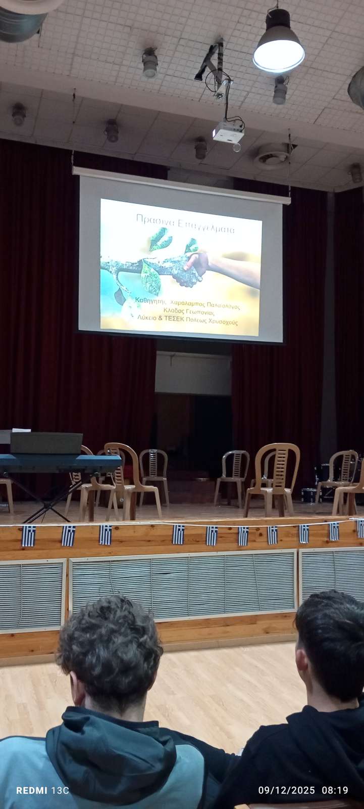 • Θέμα: Πράσινα Επαγγέλματα, ομιλητής: Λάμπης Παλαιολόγος, 2η περίοδος, Αίθουσα Εκδηλώσεων