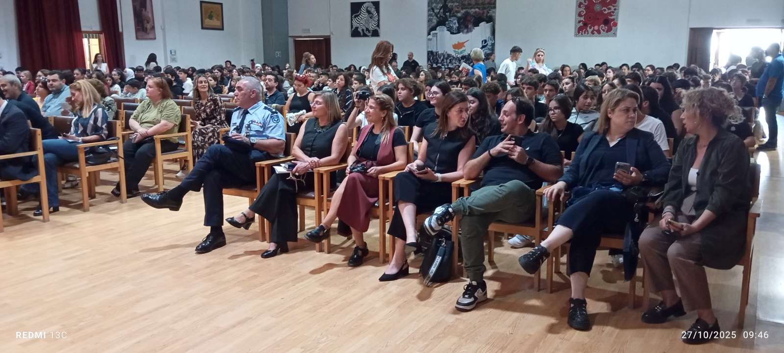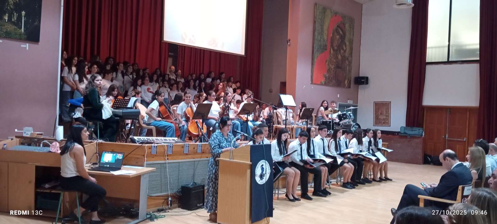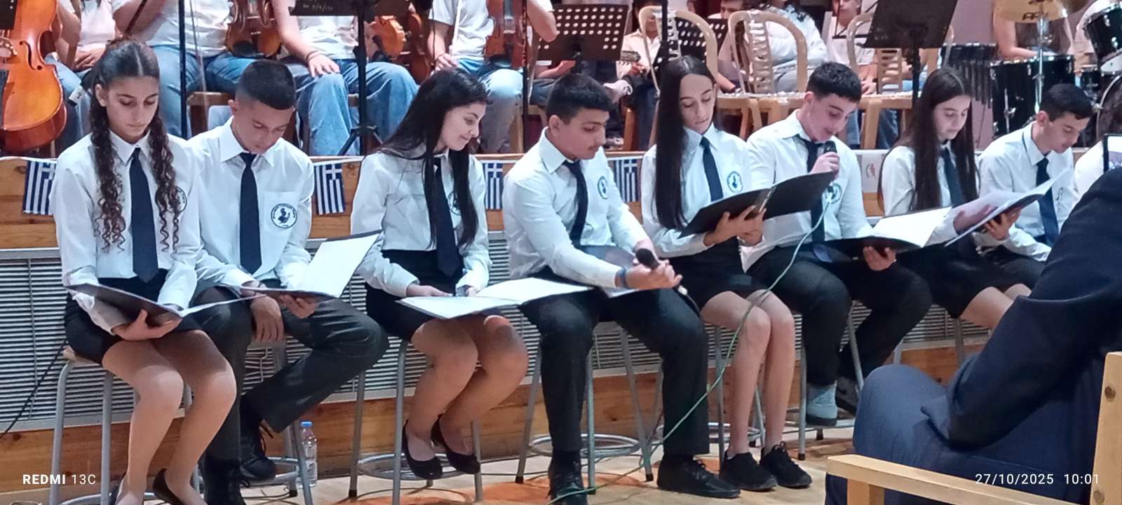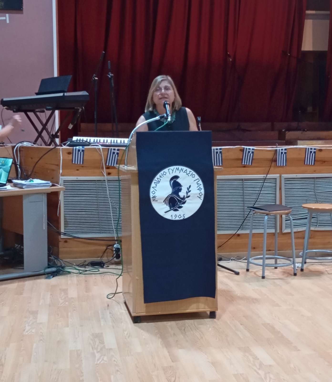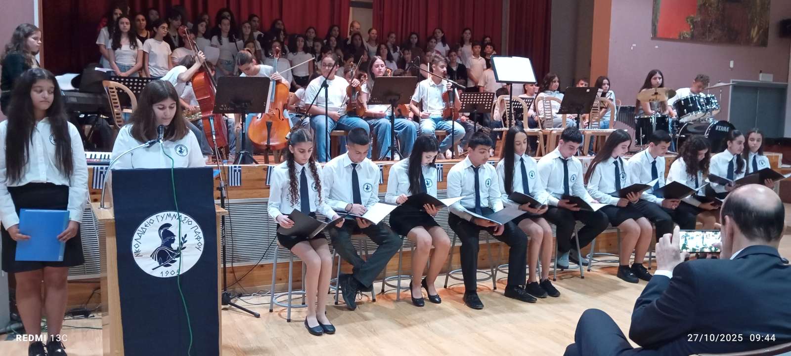 Στο πρώτο μέρος του προγράμματος έγινε η ανακήρυξη των Σημαιοφόρων και Παραστατών του σχολείου μας. Η Διευθύντρια του Νικολαΐδειου Γυμνασίου, κ. Ντανιέλλα Πιστέντη Μούγιαννου, παρέδωσε το Λάβαρο του σχολείου στη μαθήτρια Δημητριάδη Σωτηρία του Γ4, την Ελληνική Σημαία στην Κυριάκου Δανάη του Γ2 και την Κυπριακή Σημαία στη Δημητριάδη Ελευθερία του Γ5. Παραστάτες οι πιο κάτω μαθητές/τριες: Ιωάννου Μελιτίνη (Γ4), Κουππάρης Ξένιος (Γ4), Αθανασίου Σεμέλη (Γ4), Ευσταθοπούλου Μαρίνα (Γ4), Φαίδωνος Φλωρεντία (Γ2), Μουρατίδης Νικόλαος (Γ6), Σιελουβάρης Κωνσταντίνος (Γ5) και Στυλιανού Αντρέας (Γ5).
