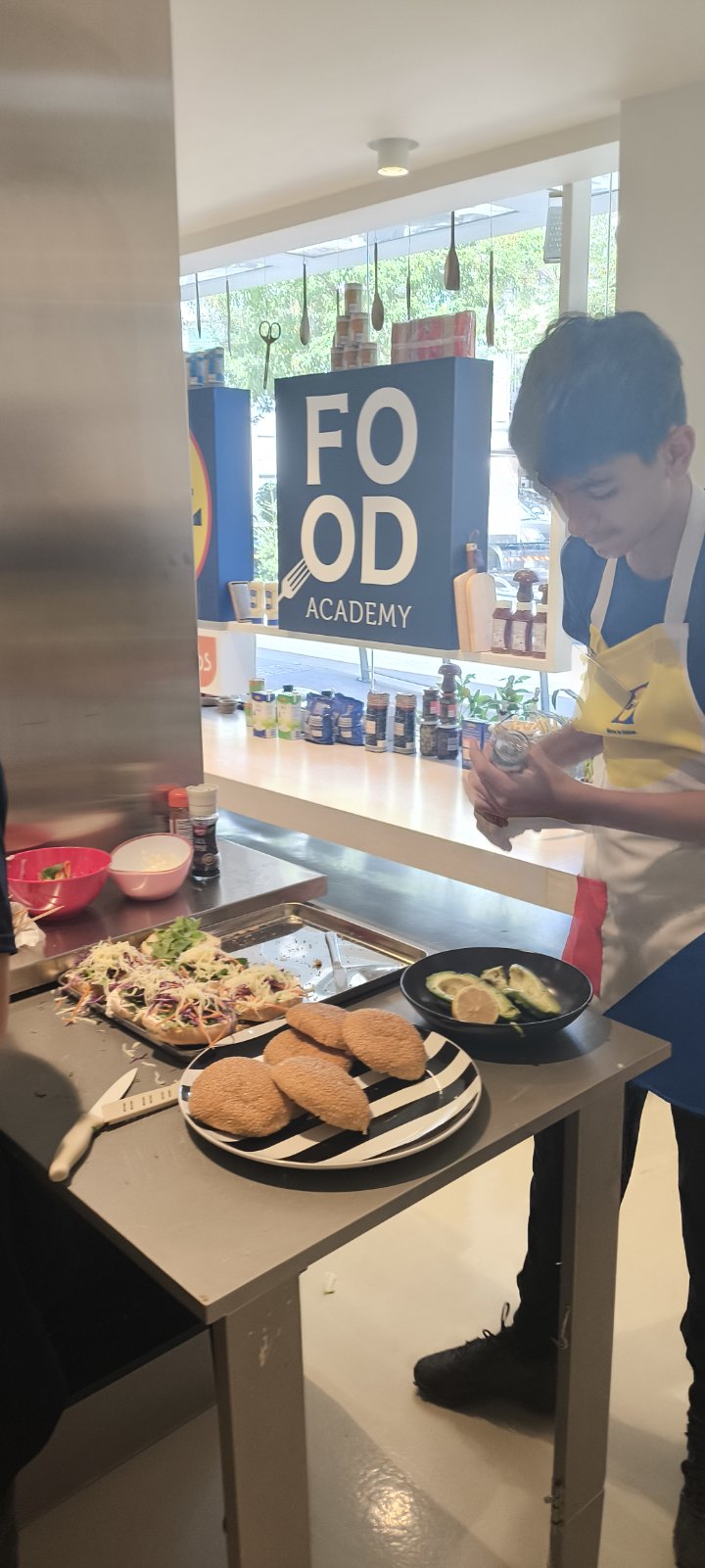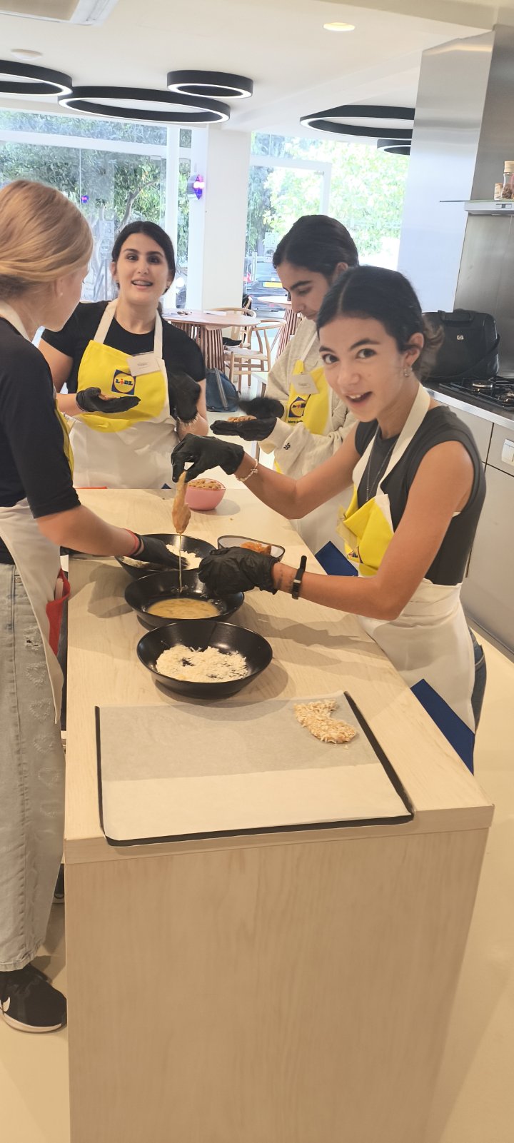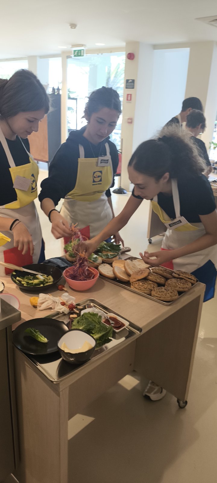 Στις 23 Οκτωβρίου 2025 το τμήμα Β6 επισκέφθηκε την ακαδημία φαγητού του LIDL στη Λευκωσία. Τα παιδιά είχαν την ευκαιρία να γνωρίσουν την ιστορία των burger μέσα από μία παρουσίαση από τη chef Ξένια Ιωάννου, η οποία τους καθοδήγησε και με την ομάδα της ανέλαβαν τους μαθητές σε μικρές ομάδες, για να μαγειρέψουν νόστιμα αλλά υγιεινά και θρεπτικά burger με πατάτες. Σκοπός, όπως εξήγησε και στους μαθητές, ήταν να καταλάβουν ότι τα αγαπημένα τους φαγητά μπορούν να είναι και υγιεινά. Τα παιδιά μαγείρεψαν, έφαγαν και ενημερώθηκαν για το θέμα της διατροφής τους, αφού στην ακαδημία ήταν και ειδική διατροφολόγος, με την οποία συζητούσαν τη θρεπτική αξία του γεύματός τους. Τους μαθητές συνόδεψαν οι καθηγήτριες Αγωγής Υγείας του σχολείου μας, κ. Ρόνα Φαρφαρά και κ. Χρίστια Χαραλάμπους.