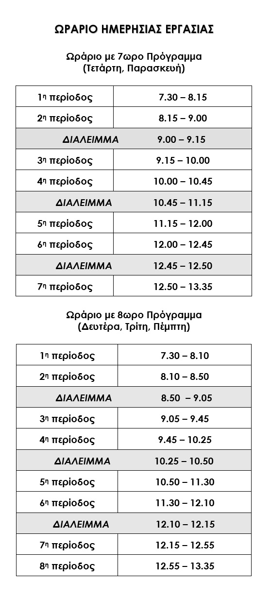 Ωρολόγιο Πρόγραμμα Β΄ τετραμήνου