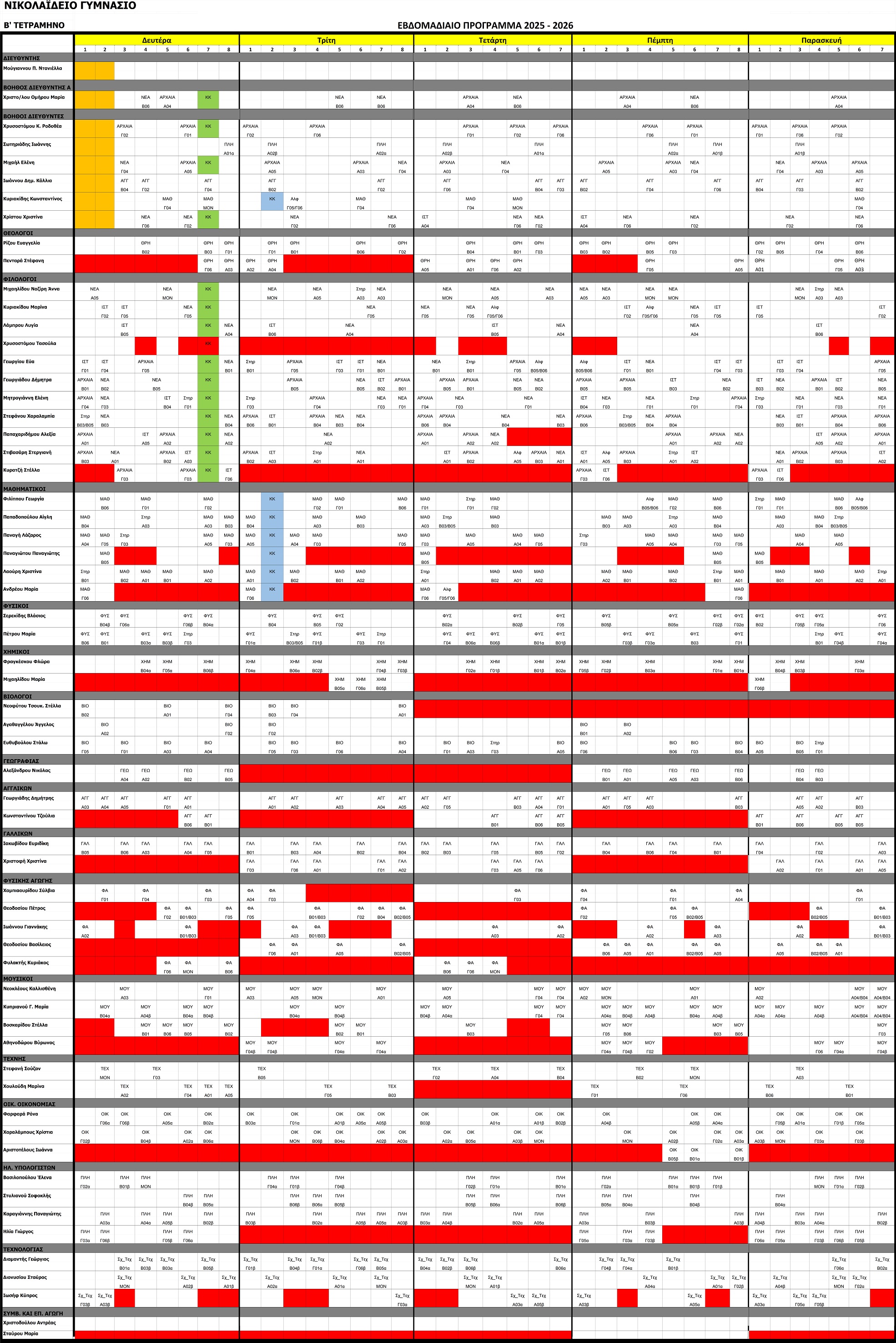 Ωρολόγιο Πρόγραμμα Β' τετραμήνου [2025-2026]